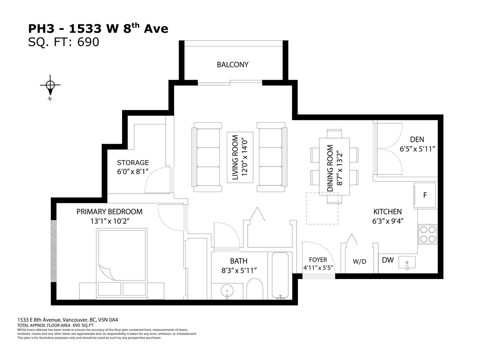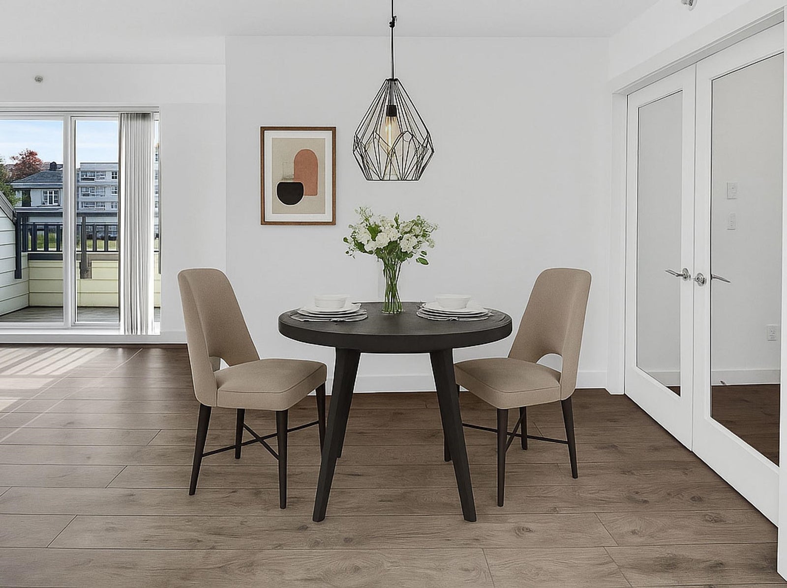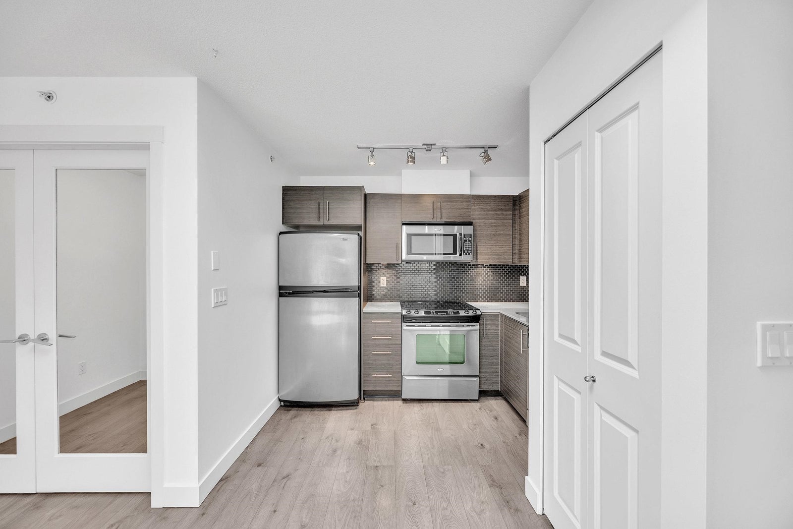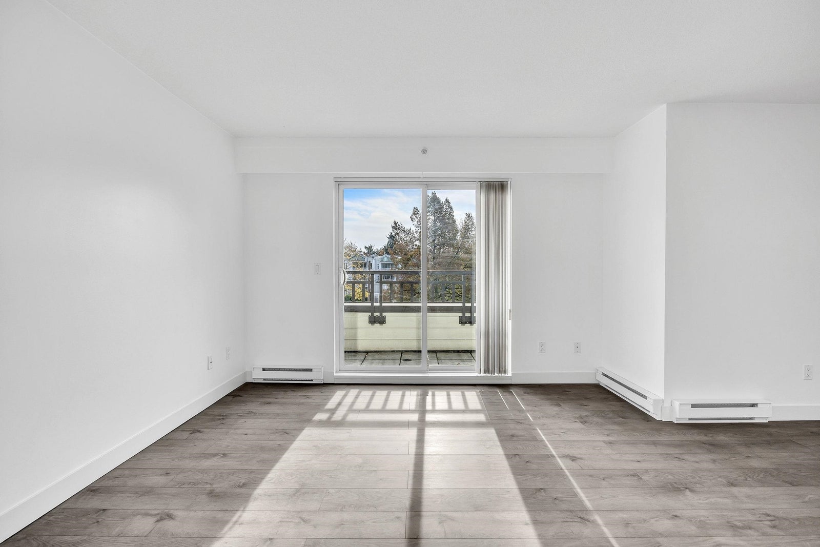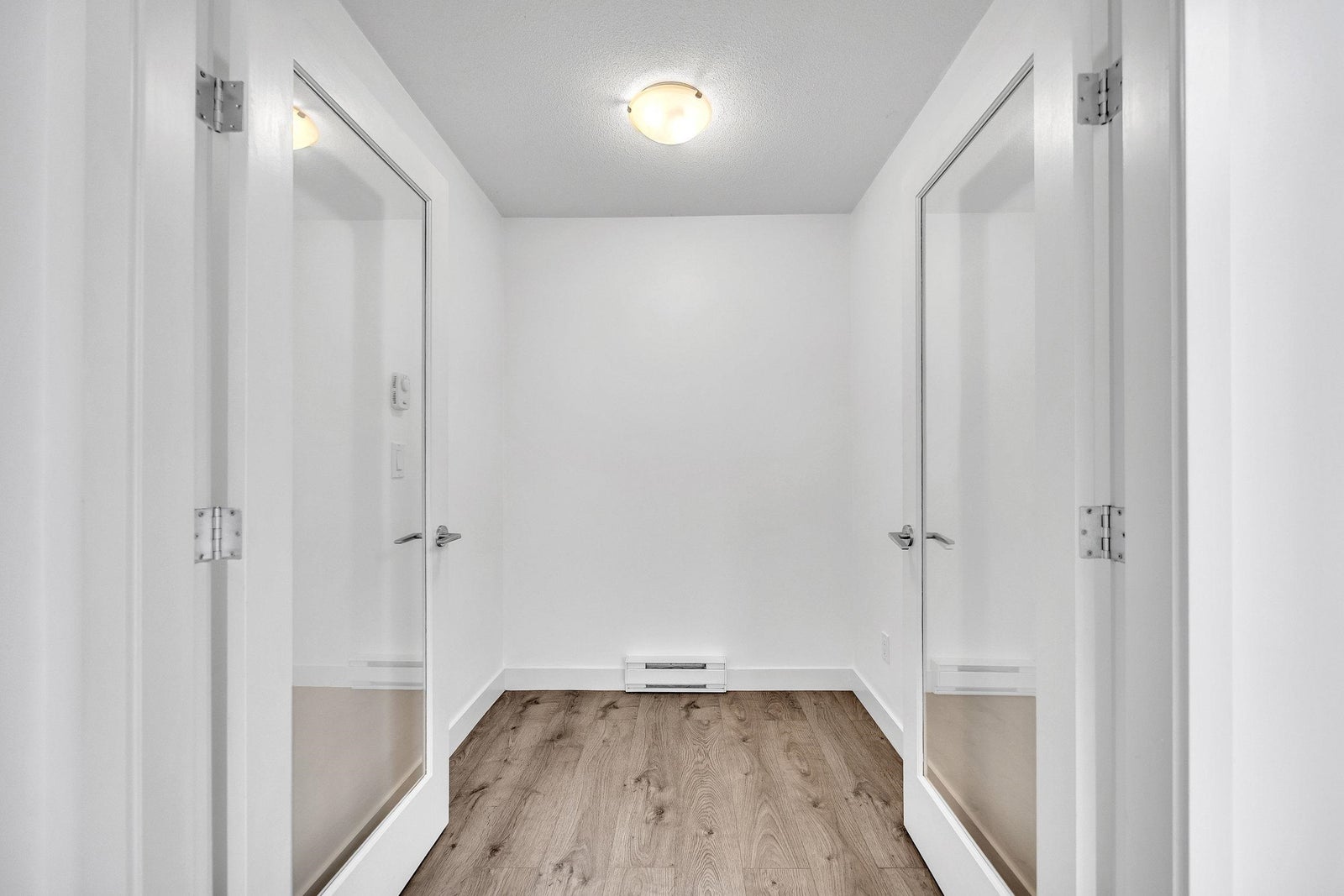 A rare find & incredible value in this top-floor retreat! This bright, south-facing corner suite welcomes you with space, light & modern comfort from the moment you arrive. Nearly 700 sqft of stylish living features ss appliances, stone countertops, new flooring & a sleek glass-tiled backsplash. Beautiful French doors open to a flexible den, ideal for a home office or creative space, while a large skylight fills the kitchen, living & entryway with natural light. Enjoy a private patio overlooking Shelley Park, quietly around the corner from the vibrant energy of Commercial Drive's cafés, restaurants, shopping & SkyTrain access all at your doorstep. Generous in-suite storage, secure parking & bike locker, this standout opportunity priced below assessed value. Open Sun 12-2pm (Nov.23rd)